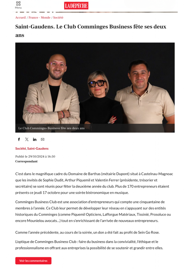 Initialement pour créer du réseau professionnel aux entreprises commingeoises, Comminges Business Club a su s’imposer en stimulant la curiosité et en instaurant un climat chaleureux et de confiance auprès de ses membres.